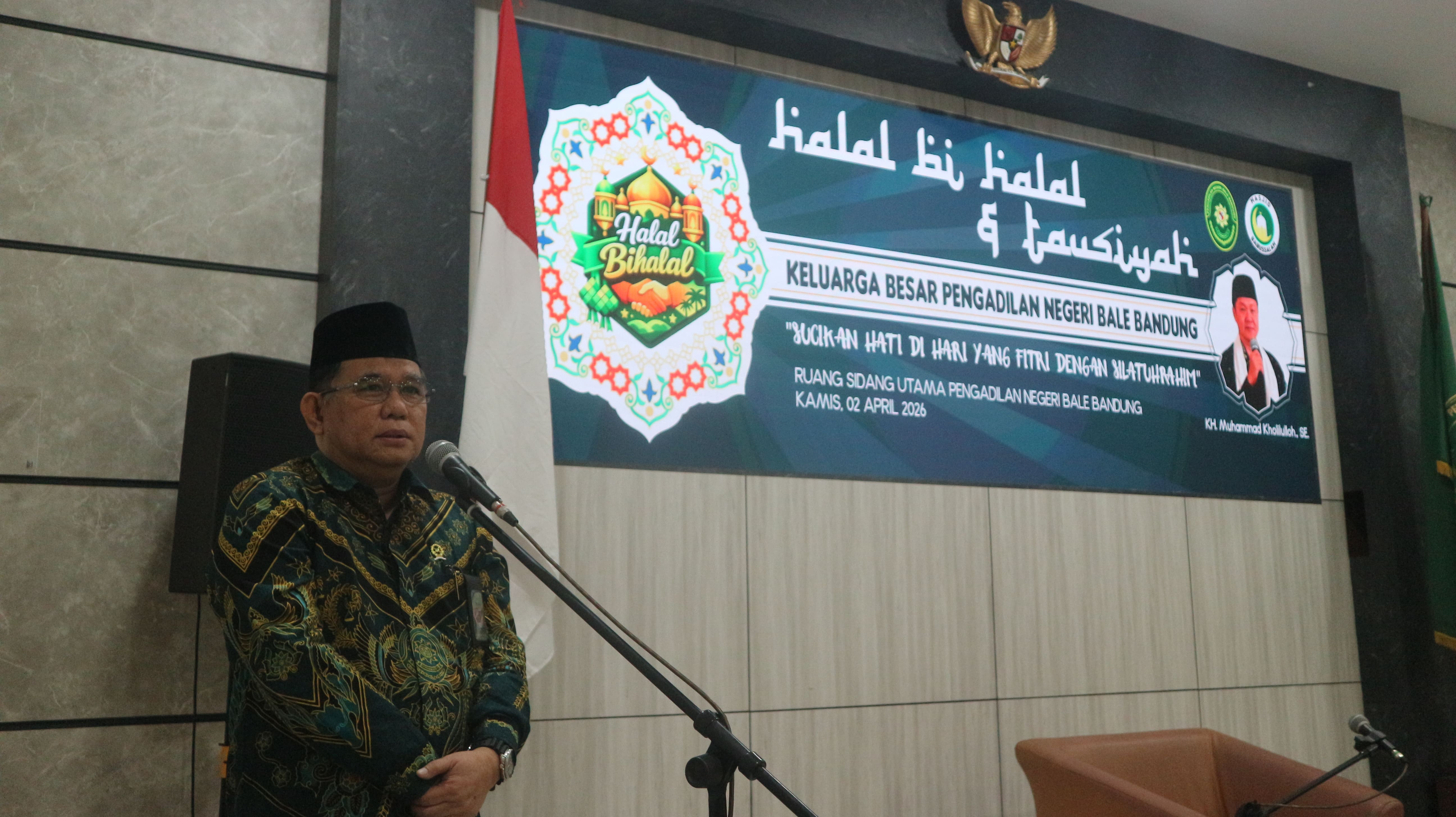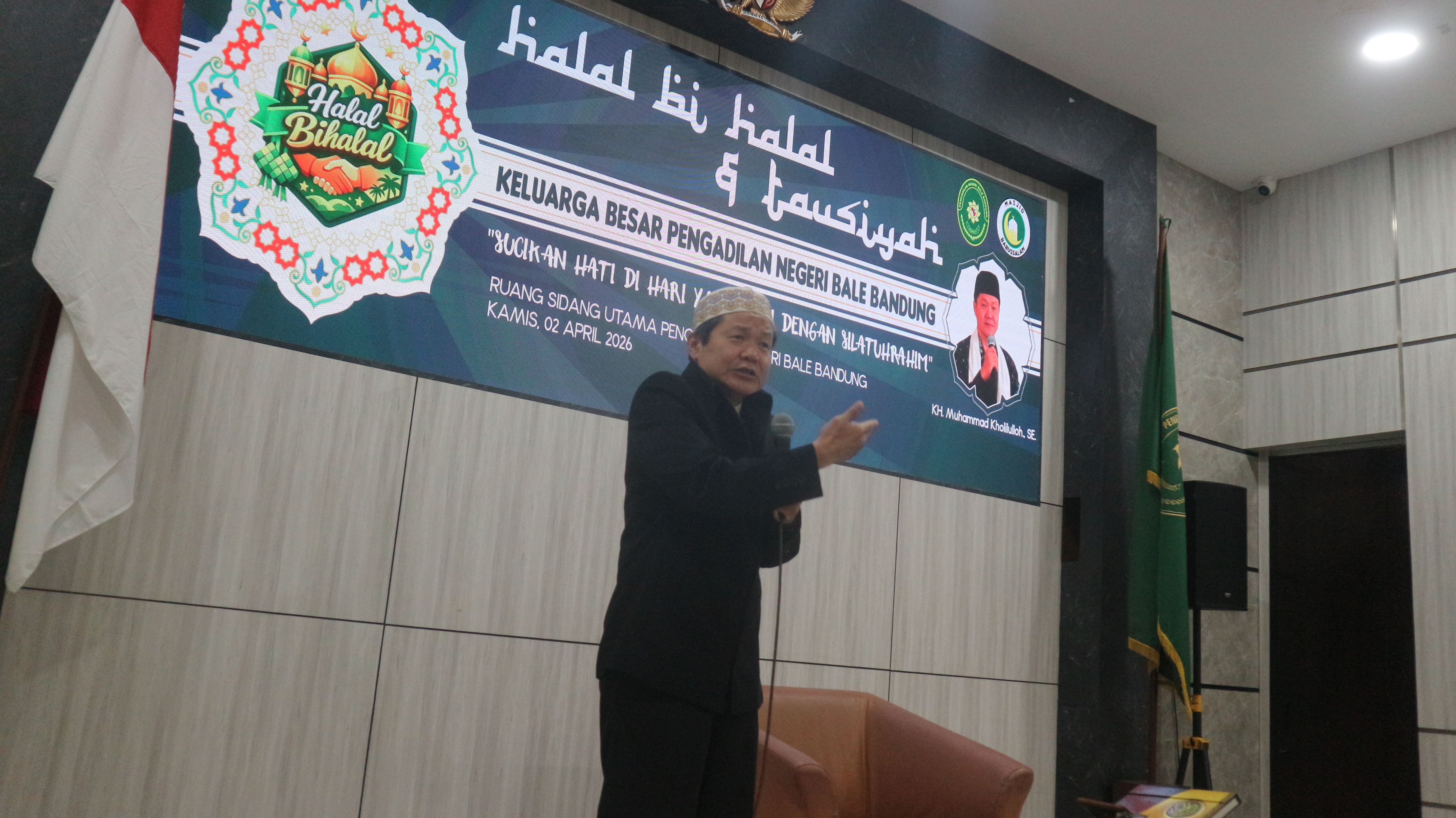 Acara silaturahmi dan pembinaan rohani dalam rangka Halal bi Halal ini diselenggarakan oleh Keluarga Besar Pengadilan Negeri Bale Bandung sebagai bentuk ungkapan rasa syukur sekaligus momentum untuk mempererat tali persaudaraan di lingkungan kerja. Mengusung tema “Sucikan Hati di Hari yang Fitri dengan Silaturahmi”, kegiatan ini menjadi sarana refleksi spiritual bagi seluruh peserta untuk kembali kepada fitrah, memperbaiki diri, serta memperkuat hubungan antar sesama.